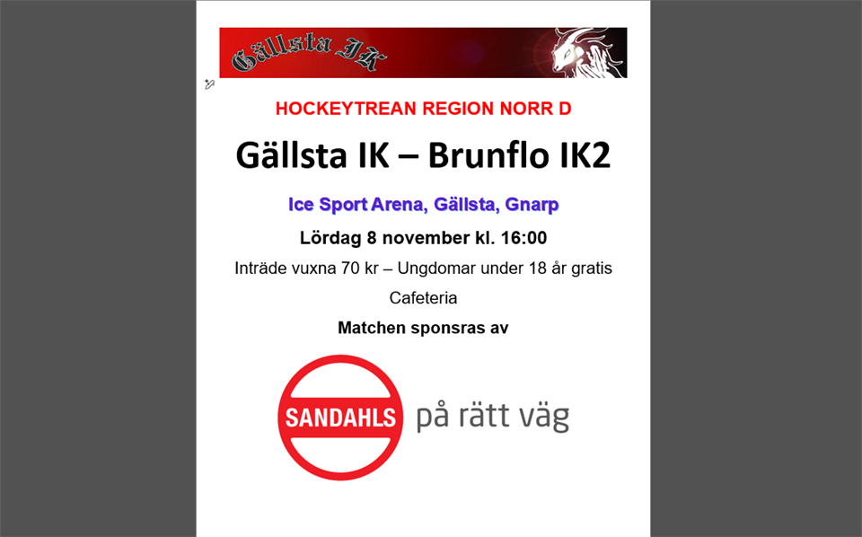 | Seniorer Brunflo IK 2 (borta) | 23 nov, 16:00 |