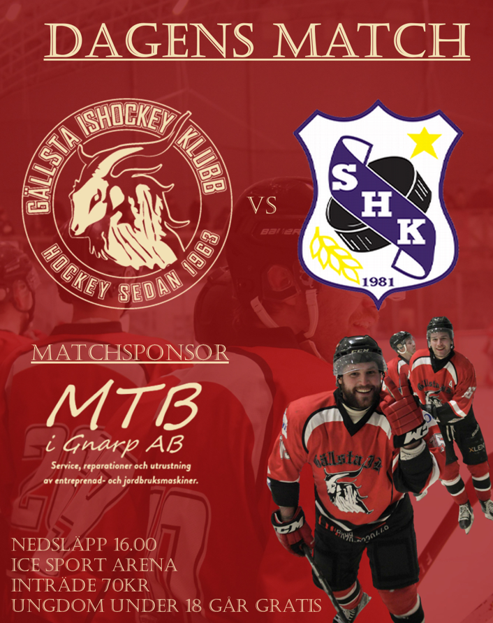 Idag är det dags för säsongens näst sista hemmamatch i HockeyTrean Herr Region Norr D. Svenstaviks HK kommer på besök i Ice Sport Arena. Matchstart kl 16:00. Svenstavik har haft en tuff säsong hittills, på 15 matcher har det ännu inte blivit en enda poäng utan laget ligger fast förankrat i botten på tabellen. Senast lagen möttes var i början på oktober när vi vann med 16-0 på bortaplan. Hur är läget i vårt lag inför dagens match? - Vi har som vanligt spelare borta men vi kommer till match med två målvakter och 19 utespelare, berättar huvudtränare Niklas Granell. Vad blir viktigt i dag? - Vi har fyra matcher kvar att spela, varje match är som en slutspelsmatch. Det är vinna eller försvinna som gäller i varje match. Vi måste ta den här matchen på största allvar, först och främst måste vi vinna, sedan gäller det att vinna på rätt sätt som en förberedelse inför nästa helg när vi har två svåra bortamatcher mot Järpen och Nälden. Alla spelare måste göra det riktiga hockeyjobbet ordentligt i varje situation. - Kan du utveckla det så att även en orienterare förstår? - Det gäller att alla spelare jobbar hårt i forechecking, backchecking, vinner närkamper, ligger på rätt sida om pucken, är i vägen i skottlinjen, vinner tekningar, åker snabbt till byte etcetera. Samtidigt måste vi behålla strukturen i det vi skall göra som lag. Tack och lycka till! Matchen startar kl 16:00 och sponsras av MTB i Gnarp AB. MTB i Gnarp AB servar, reparerar och utrustar entreprenad- och jordbruksmaskiner. NÄSTA HEMMAMATCH: Lördag 14 februari kl 16:00 Gällsta IK - Svenstaviks HK