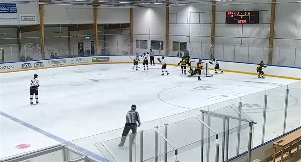 Söderhamns IK visade sig vara det starkaste laget i premiären. Det blev förlust för Gällsta med 6-2 (1-0, 2-1, 3-1). Trots siffrorna var det en någorlunda jämn match och bortalaget visade då och då att spelet finns där. Söderhamn startade piggt i första perioden och kunde också göra 1-0 efter sju minuter när två Gällstaspelare krockade med varandra och lämnade Anton Johansson i målet ensam. I slutet av första och i början av andra perioden redde bortalaget ut två numerära underlägen efter delvis imponerande spel. Men tyvärr, tredje gången i numeerärt underläge målade SIK direkt. Reduceringen till 2-1 kom efter fint spel av Gällsta i numerärt överläge, Linus Lindström nätade assisterad av Johannes Malm Nilsson och Patrik Westergren. Noterbart att både Lindström och Malm-Nilsson var inlånade från HHC J och att målgörare Lindström dessutom har Söderhamns IK som moderklubb. Tyvärr kom vi inte närmare än så i kvällens match, Söderhamn drog ifrån och vann till slut med 6-2. Men Gällsta var inte chanslösa och gjorde, efter förutsättningarna (några träningar på is och inga träningsmatcher) en bra insats enligt mig. Olyckligtvis fick Adrian Thorin en klubba i ansiktet och utgick redan i första perioden. Som den kämpe han är försökte han hitta ett skydd så han kunde fortsätta spela, men utan att lyckas. Allt tyder dock på ytliga skador så han är säkert snart tillbaka på isen. Så här sa Fredrik Danell efter matchen: - Helt OK första period, grabbarna gjorde det riktigt bra, vi går bort oss lite vid målet. I andra blir vi lite trötta på vissa håll och tappar vårt spel men klarar oss undan med 3-1. Vi gör egentligen en bättre sista period även om vi släpper in tre mål till. Man kan ju aldrig vara nöjd med en förlust men med tanke på förutsättningarna krigade grabbarna på bra och vi gjorde vad vi kunde. Juniorerna från HHC (Linus Lindström och Johannes Malm Nilsson) gjorde det också riktigt bra. Bilden: Gällsta har precis reducerat till 2-1 genom Linus Lindström MATCHFAKTA Söderhamns IK - Gällsta IK